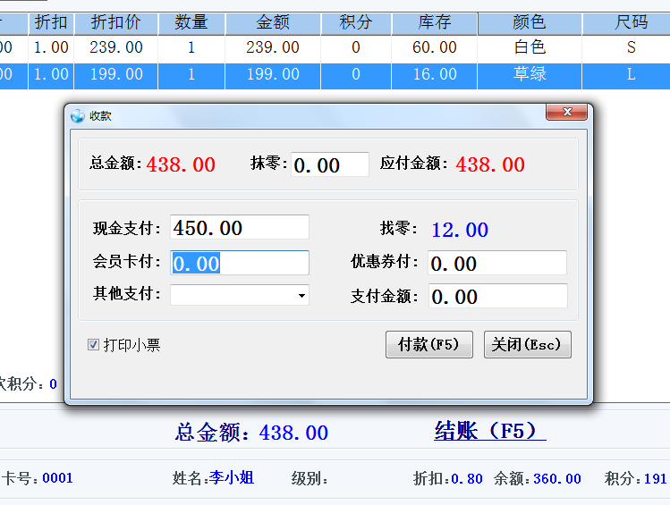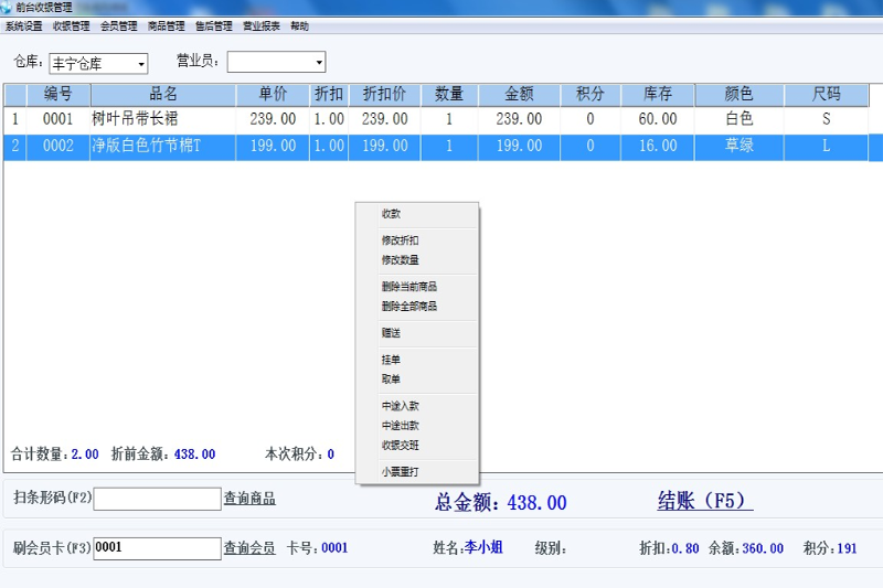 前臺(tái)POS收銀界面