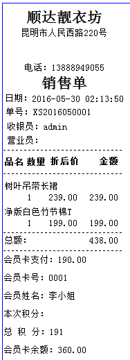 小票打印界面,可以根據(jù)客戶的要求設(shè)計(jì)各式各樣的小票樣式