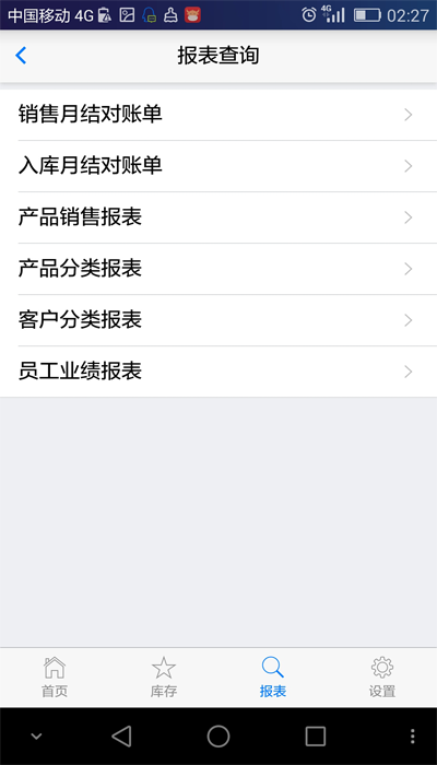 手機(jī)端報(bào)表查詢界面,可以在手機(jī)上實(shí)時(shí)查詢各種報(bào)表